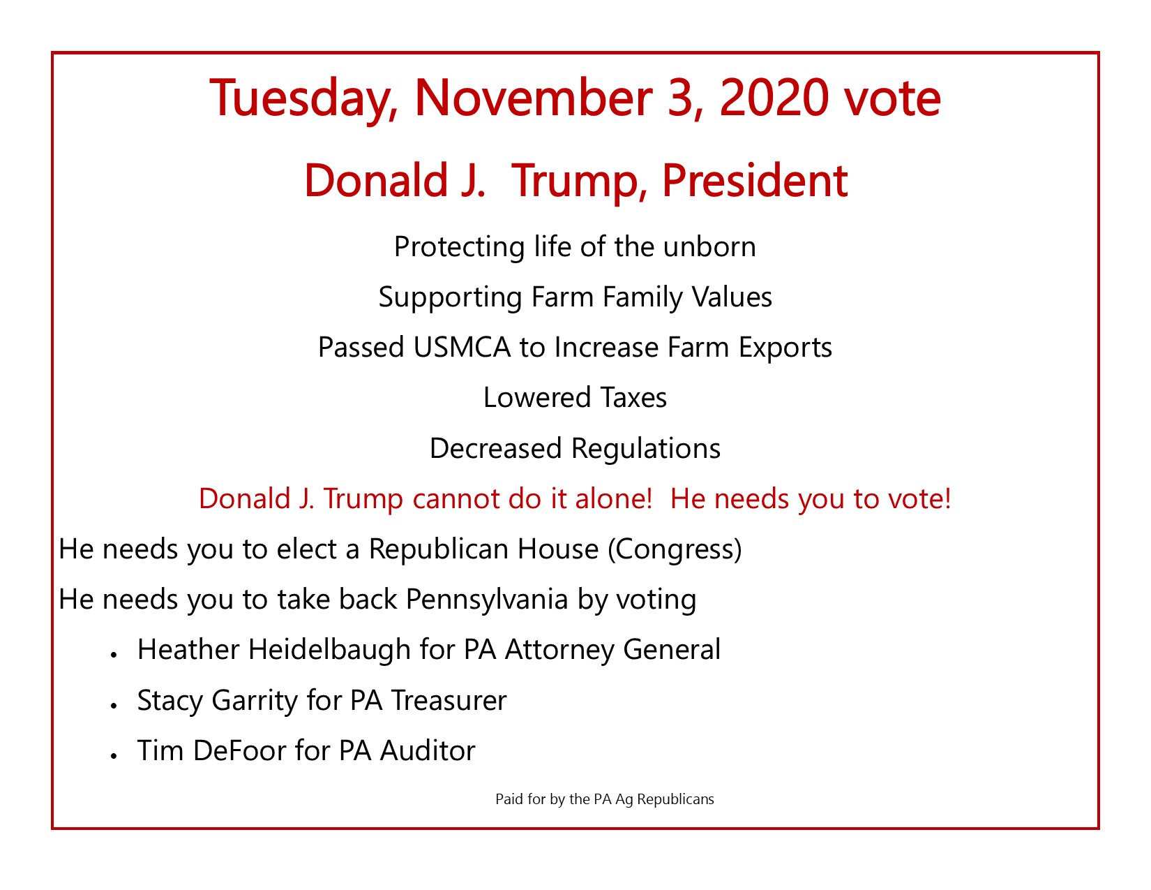 Keep America Great by voting for the Republican Team on 11/3/2020 October 31, 2020November 1, 2020 / * * * Donald J. Trump cannot do this alone, he needs a good team to get the work done. Vote for the Republican Team on 11/3/2020. Share this: Click to share on Facebook (Opens in new window) Facebook Click to share on X (Opens in new window) X Like Loading... Related