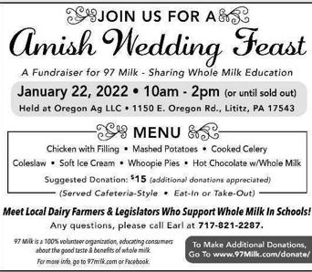 Attend an Amish Wedding Feast to support 97milk.com January 14, 2022January 10, 2022 / * * * Did you know whole milk if 97% fat free? Share this: Click to share on Facebook (Opens in new window) Facebook Click to share on X (Opens in new window) X Like Loading... Related