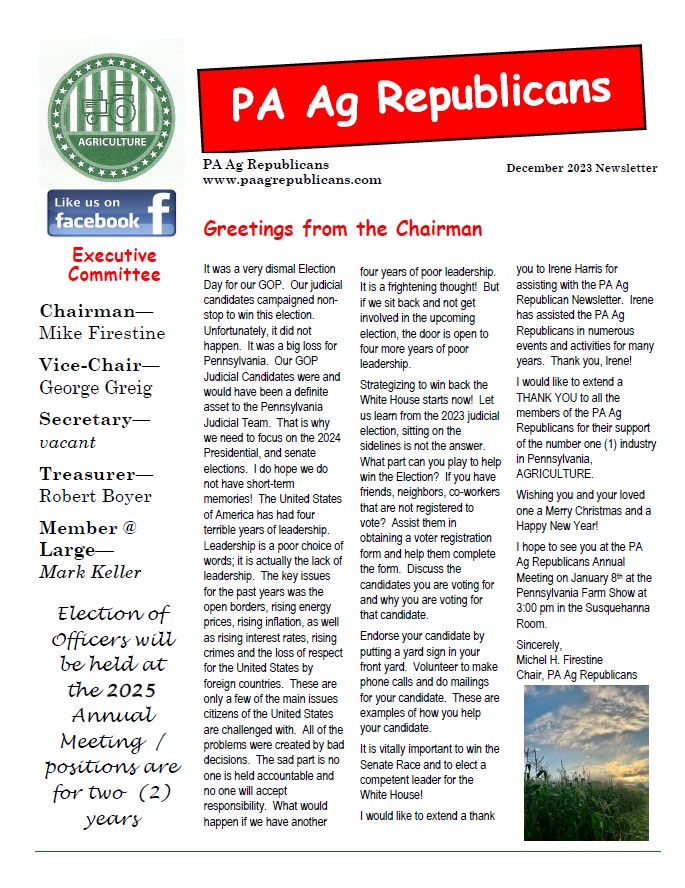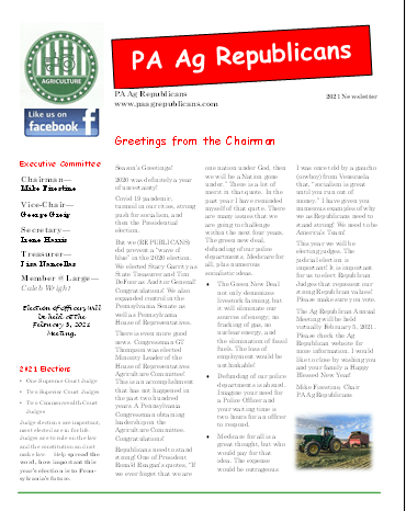 PA Ag Republicans release 2022 Newsletter December 30, 2021 / * * * Click here to download 2022 Newsletter